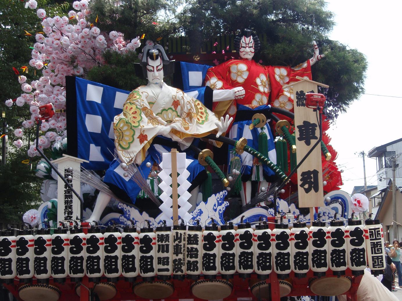歌舞伎「菅原伝授手習鑑」の三段目、 「車引」より松王丸と梅王丸を飾る。