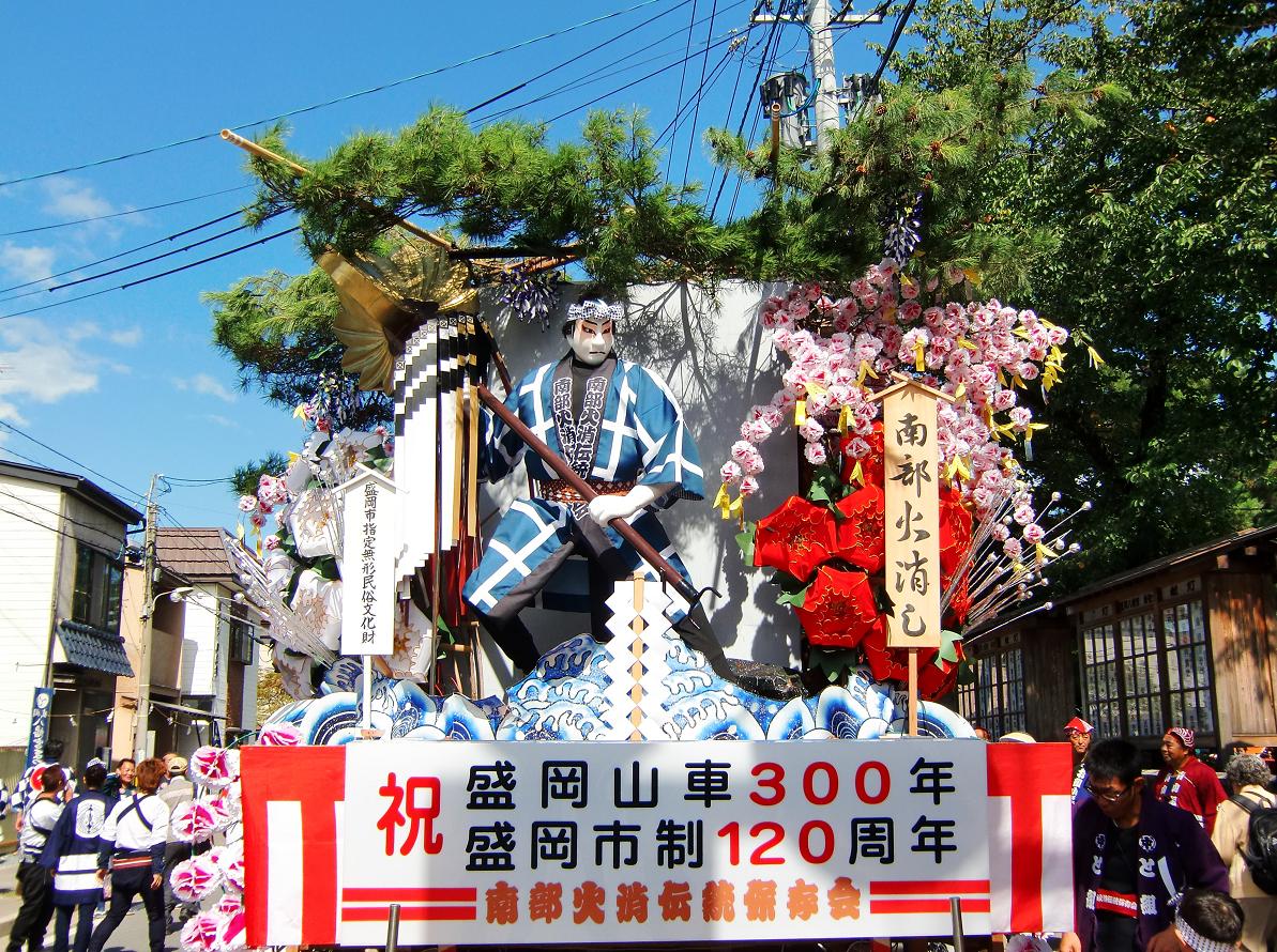 山車運行300周年の記念として、本年は、 その南部火消の伝統である纏振りの姿を飾る。
