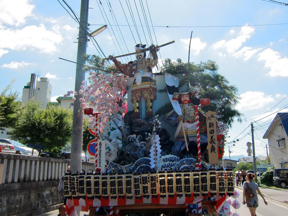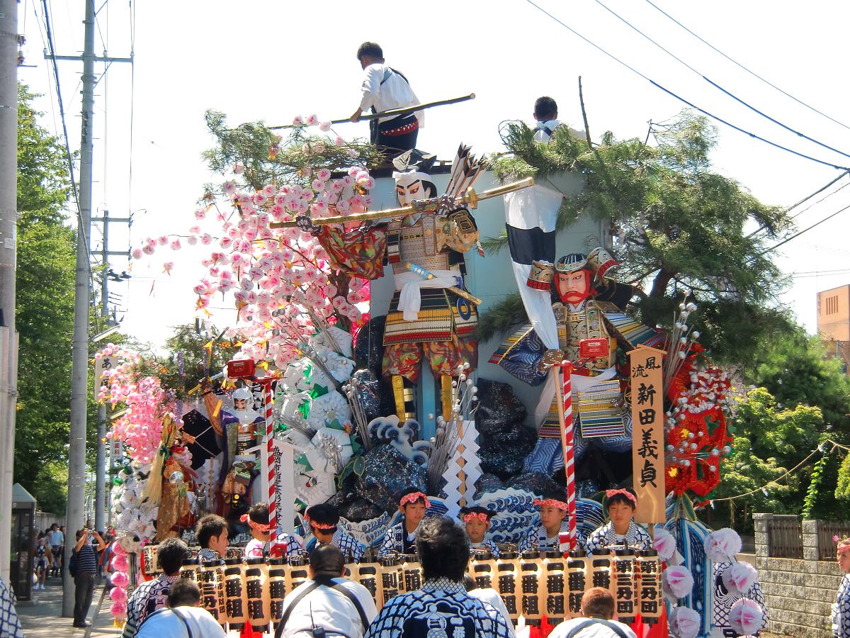 本年の山車では、宝刀を捧げ、海に投じる姿の義貞を飾る。
