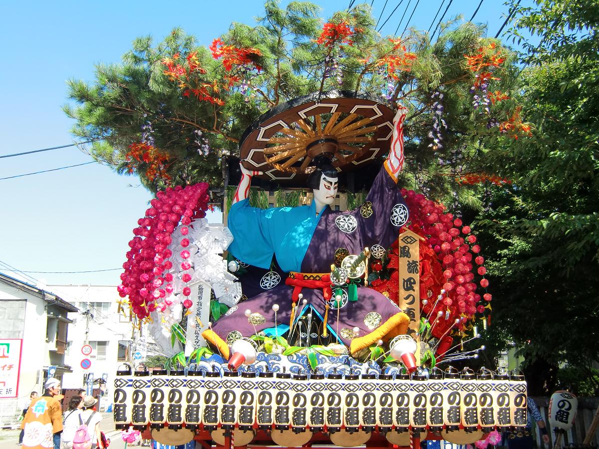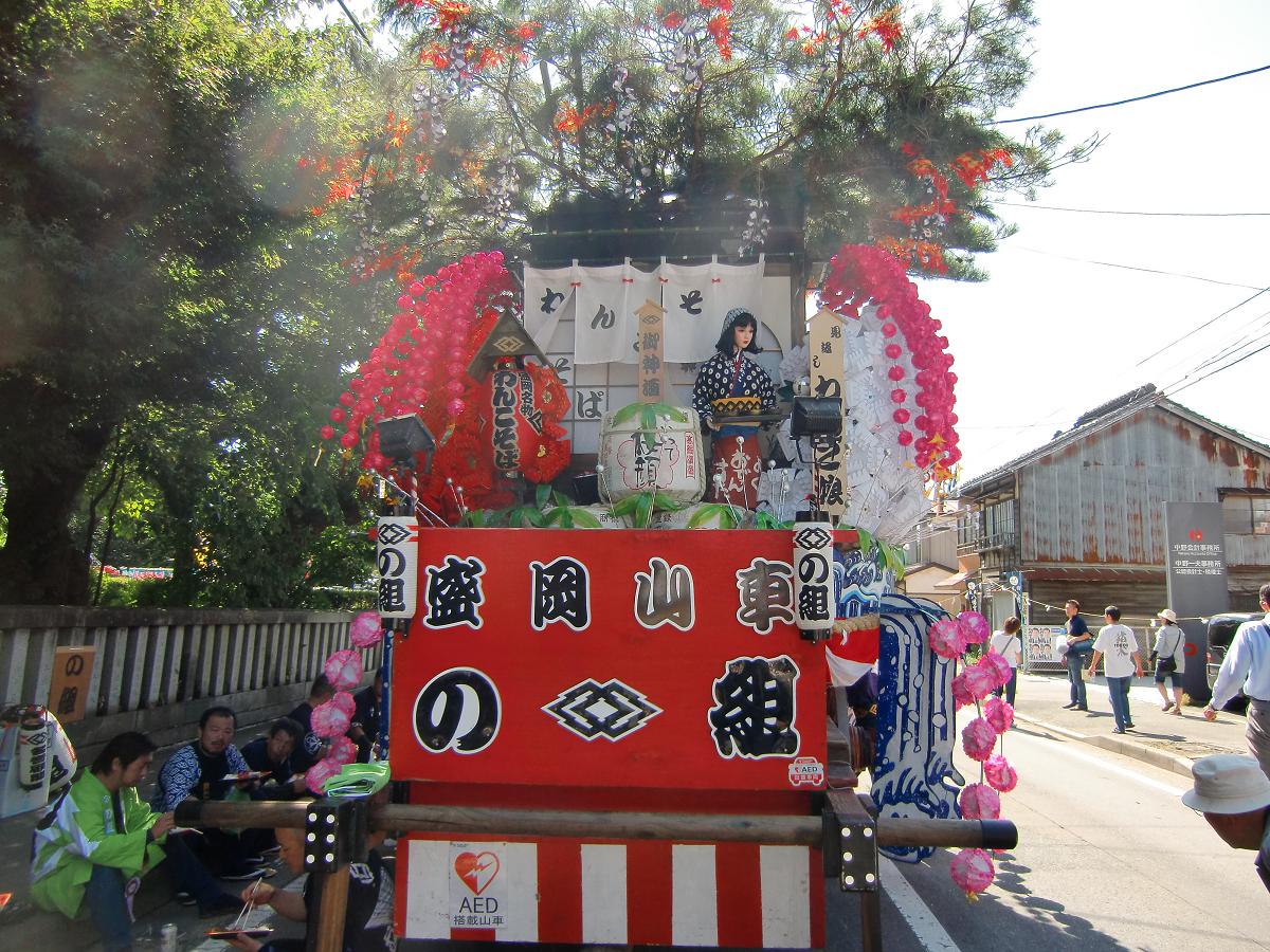 この山車では「はいどんどん、はいじゃんじゃん」と、 今にも声が聞こえてきそうなかわいらしいわんこ娘を見返しに飾る。 |