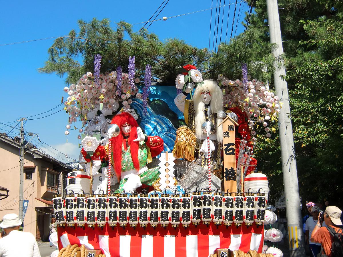 次に、この清涼山に、浄土宗の坊主と日蓮宗の門徒が登場。 異なる宗旨をめぐって争っていると、恐ろしい物音と共に白毛の親獅子と 赤毛の子獅子が登場し、頭を振り回し、親子の「試練と情」を演じる。 |