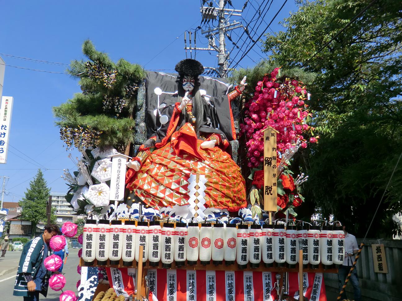 本年の山車では、釣鐘をせり上げで見せる工夫がなされていた。 |