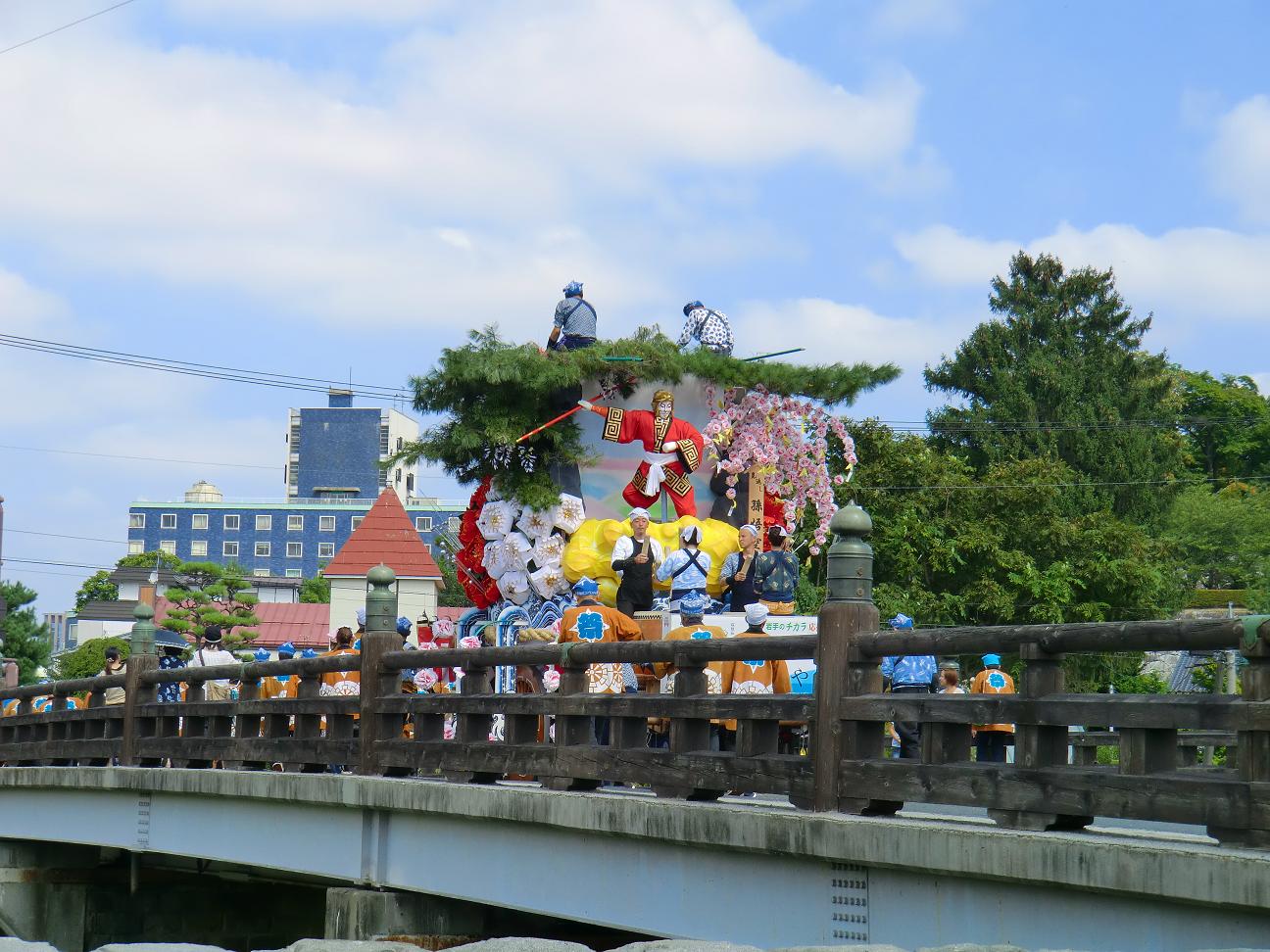 平成24年度 盛岡観光コンベンション協会 「盛岡山車」と下の橋・盛岡城跡 3日目・9月16日の午前中、 盛岡観光コンベンション協会の山車が下の橋を通過している様子です。 盛岡といえば、「橋と擬宝珠」。 下の橋を渡る山車の姿と、擬宝珠と盛岡城(岩手公園)の石垣が 写り込むスポットは実は、ここだけなのです。